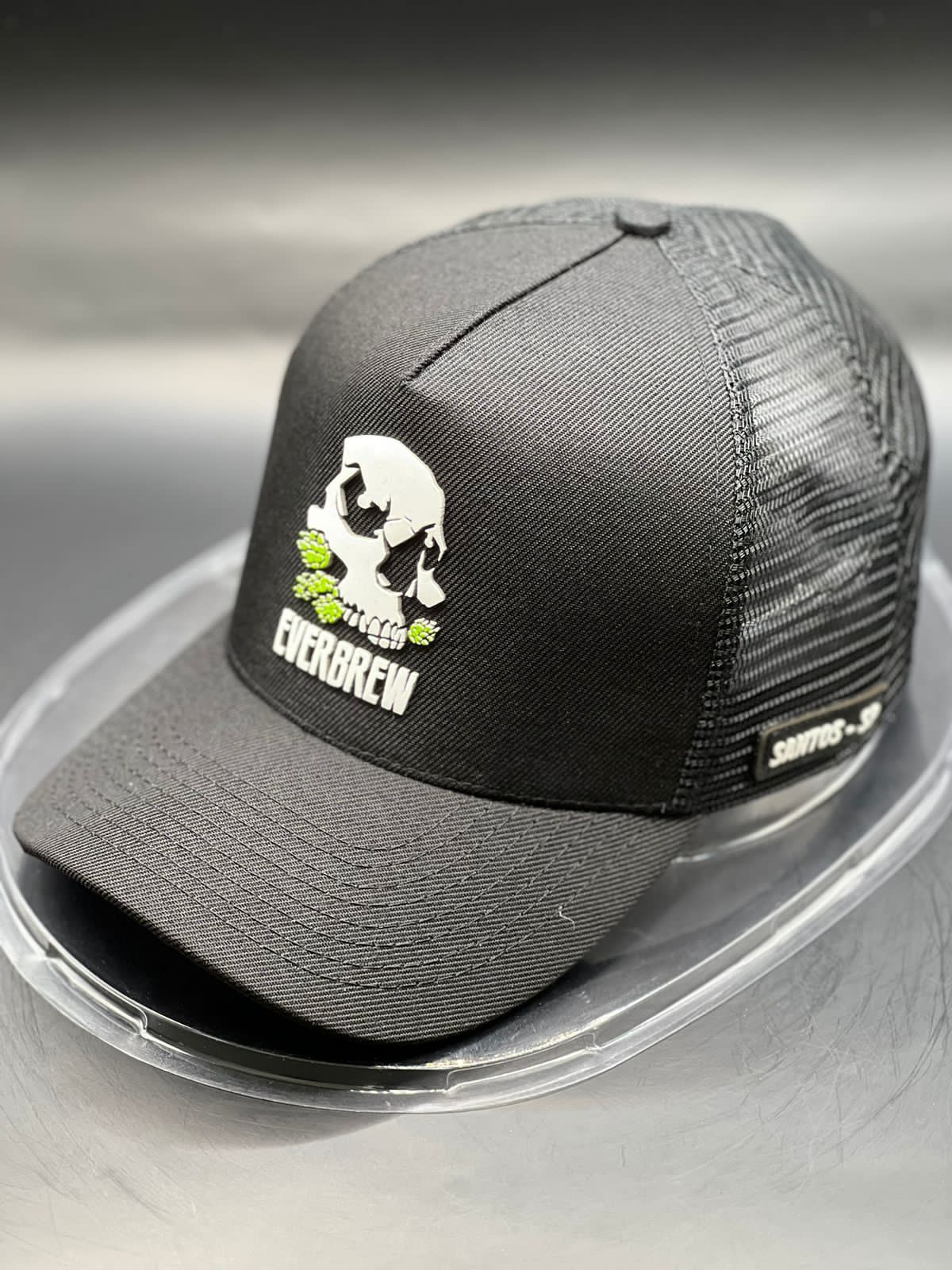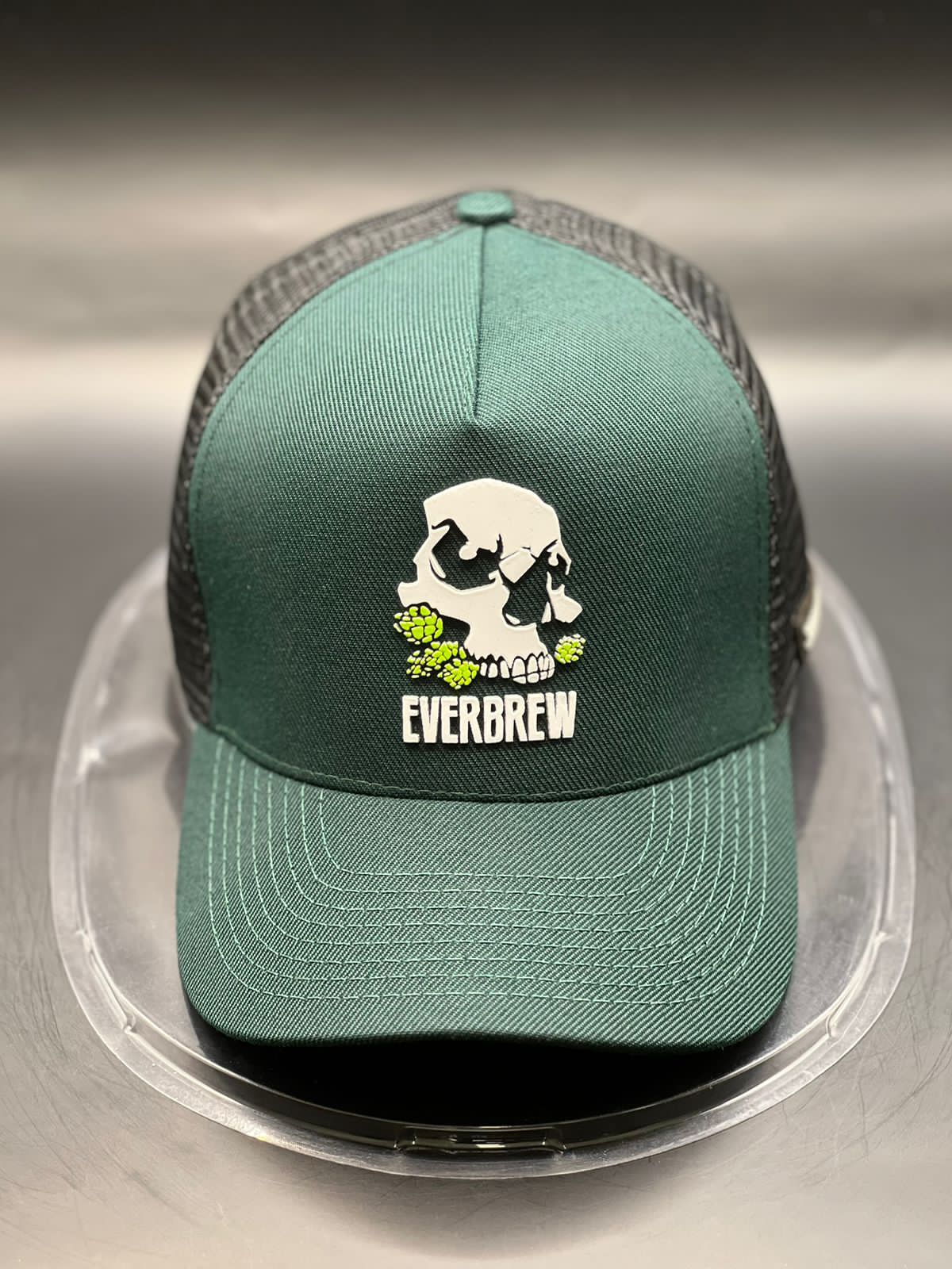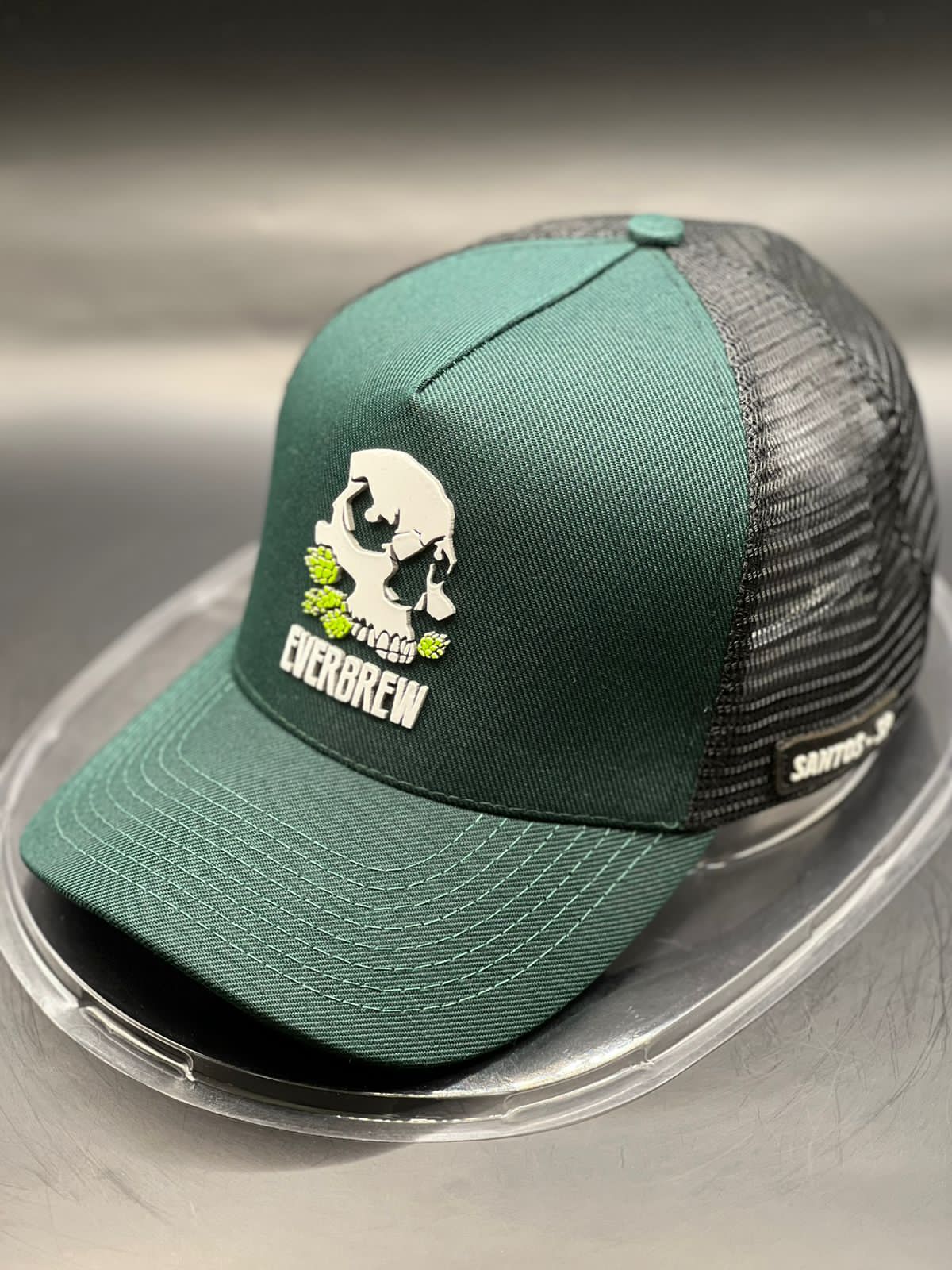 Boné trucker nas cores: preta e verde escura, com redinha preta. Tamanho único, regulável.